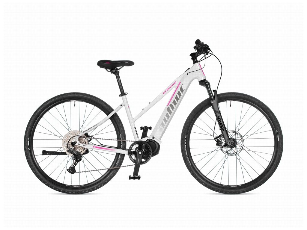Velmi populární dámské krosové elektrokolo kategorie E-CROSS 29 vyšší třídy. Tato kategorie vychází z požadavku doby o větší komfort při běžné jízdě i mimo silnici a popularitu 29" kol. Všechny modely E-CROSS 29 mají zdvih odpružených vidlic 80 mm. Uživatelce nabídne optimální poměr mezi sportovním a komfortním projevem. Za jeho sportovními ambicemi stojí především nízká hmotnost a citlivý projev elektromotoru Shimano STEPS. Díky torznímu snímači v klikách dokáže jemně dávkovat svoji pomoc a nekazí tak pocit jízdy, který je velmi podobný jako na běžném kole. Pohodlí zde představuje zejména snížený rám s nízkým nástupem, který je doplněn vzduchovou odpruženou vidlicí RST. Ke skvělému pocitu z jízdy přispívá i velmi měkké gelové sedlo a ergonomické gripy. Díky nízkému těžišti, lehkému a přesnému řazení nového Shimano Cues s rozsahem kazety 11–48 zubů a citlivým brzdám Tektro se Enigma skvěle ovládá a poskytuje své jezdkyni unikátní jízdní zážitek. Model je určen zejména sportovněji založeným ženám a dívkám, které byly či jsou zvyklé jezdit na kole. Není to motorka, která by odvedla všechnu práci za jezdkyni, ale chytrý citlivý stroj, který svoji dopomoc poskytne právě ve chvíli, kdy je jí potřeba. Author Enigma Vám tak umožní zvládnout kopcovitější nebo delší trasu aniž byste si sáhli na dno fyzických sil. Můžete si tak užívat cyklistiku bez stresu že někoho zdržujete, bez obav z toho, že Vám dojdou síly. Zmizí strašák dlouhých stoupání a nepříjemného protivětru, zůstanou pouze příjemné pocity a čistá radost ze zdravého pohybu. Enigma je jednou provždy vyřešená hádanka, zda je pro Vás vhodné elektrokolo.