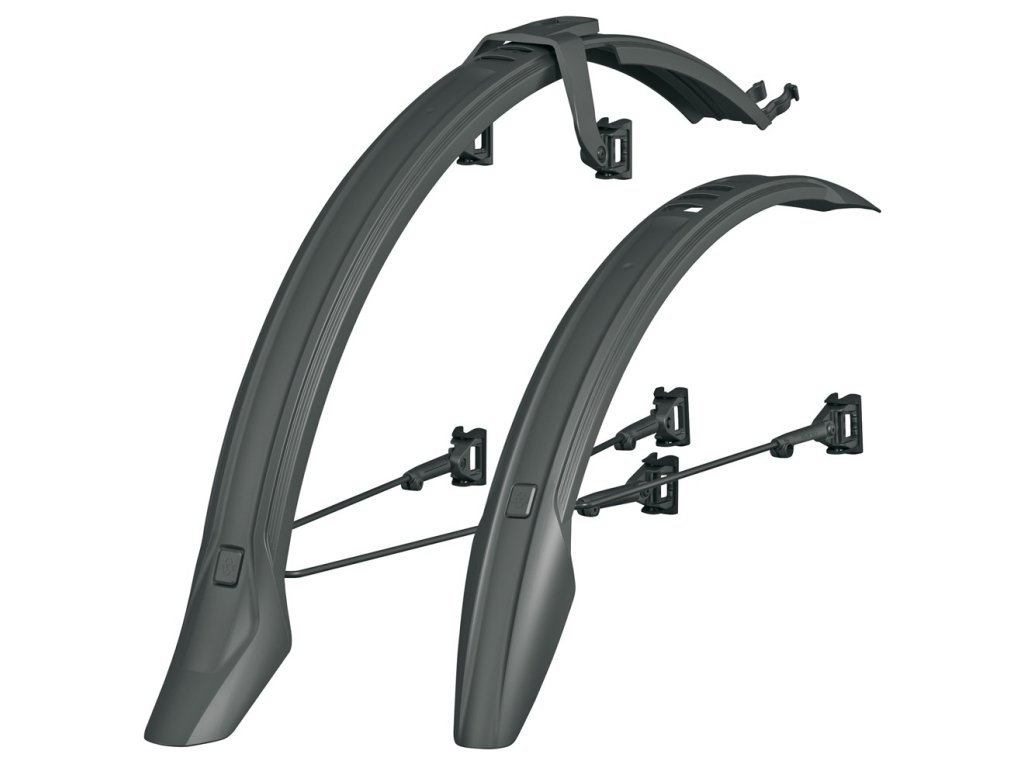 Sada univerzálních blatníků, které lze upnout na rámy kol bez montážních držáků pro blatníky. V nabídce je stále více a více kol bez držáků na blatníky. Nová sada blatníků VELOFLEXX tento problém vyřeší. Není potřeba nářadí a montáž je velmi jednoduchá a rychlá. Blatníky jsou uchyceny na rámu a vidlici pomocí univerzálního rámového adaptéru a gumových pásků, případně pásku na suchý zip.