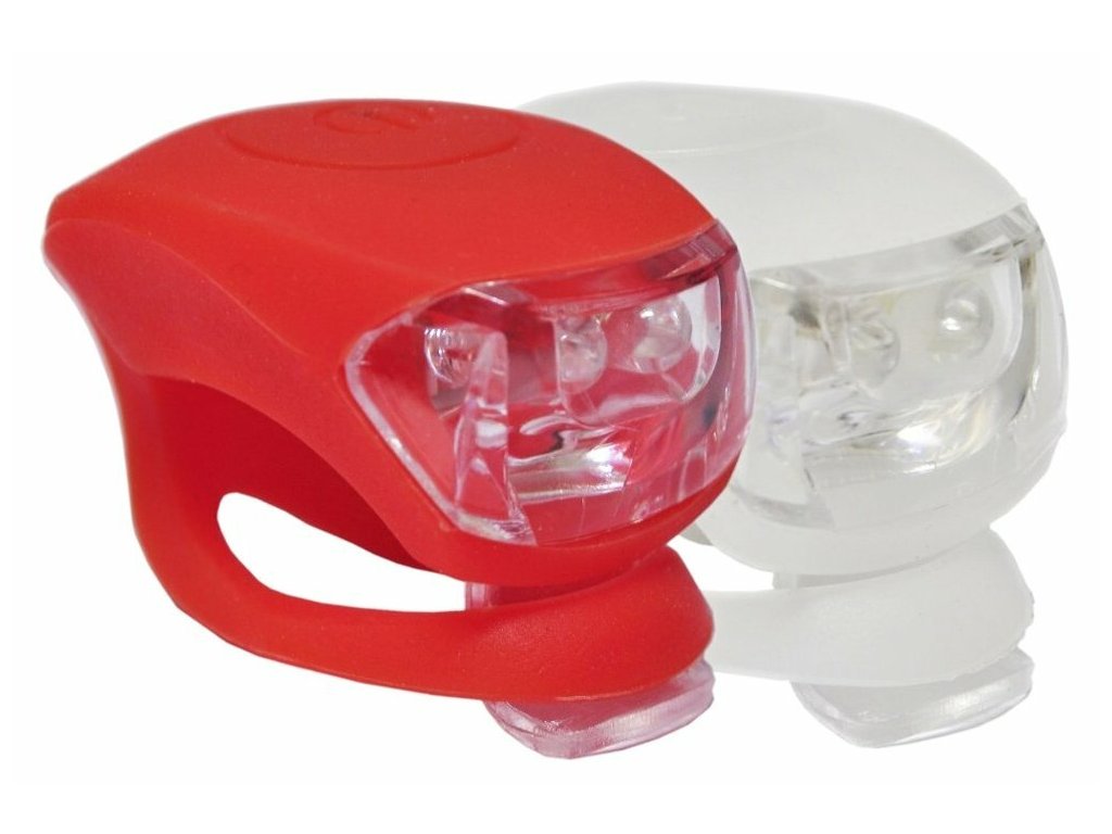 Sada blikaček v silikonovém pouzdře se 2 LED, voděodolné, až 40 h provozu, viditelnost 400 m, lze snadno a kamkoli připevnit.