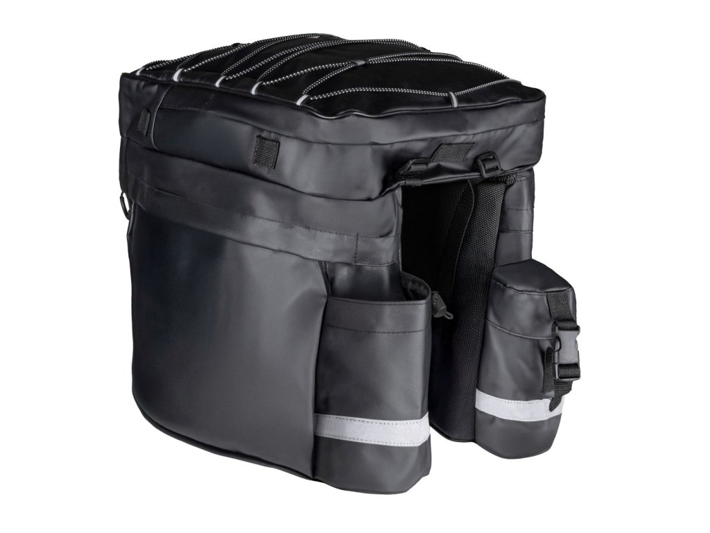 Trojbrašna je ideální i pro více denní cykloturistiku. Je vybavena třemi prostornými kapsami, dvěmi menšími kapsami na bocích a na vrchní brašně a dvěma kapsami v zadní části. Je voděodolná a díky vyztužené části na vnitřní straně dobře drží tvar a odolává mechanickému poškození.
