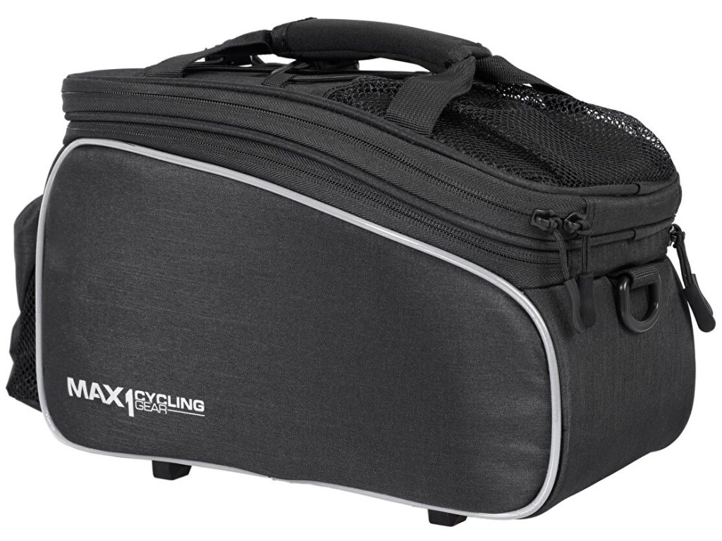- víceúčelová brašna na nosič s nastavitelným objemem (rozepnutím horního zipu)