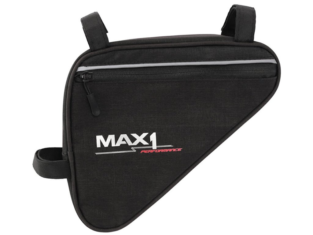 Velký objemný rámový trojúhelník MAX1 Triangle L. Ideální pro přepravu nabíječky na Vašem cyklistickém výletě na elektrokole. 2 kapsy pojmou 3,78 l objemu.