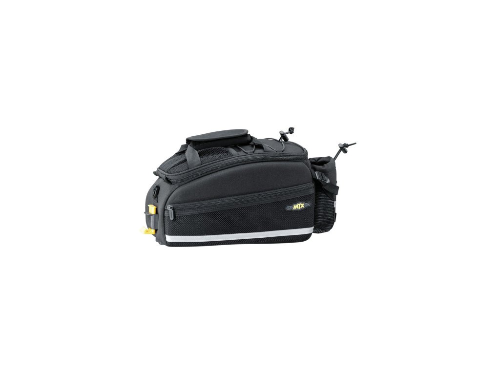 Brašna na zadní nosič se střední kapacitou. Prostor je dělen na jednu hlavní část a dvě boční kapsy na zip. Brašna kombinuje tvarově stálý materiál s pružnou a odolnou textilií Denier 600. Brašna je vhodná pro všechny nosiče Topeak se systémem MTX QuickTrack™.