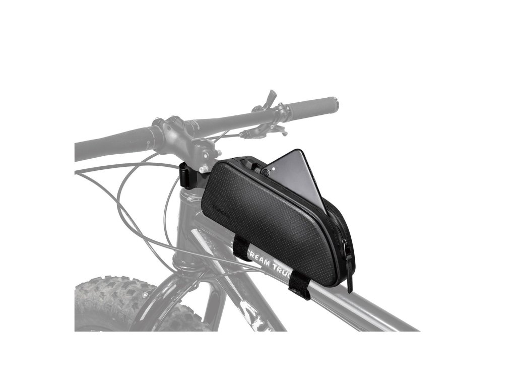 Pevná voděodolná brašna na horní rámovou trubku poskytuje cyklistům rychlý a jednoduchý přístup k osobním věcem. Energetické tyčinky, telefon, peněženku, klíče či jiné drobnosti teď můžete mít doslova na dosah ruky.