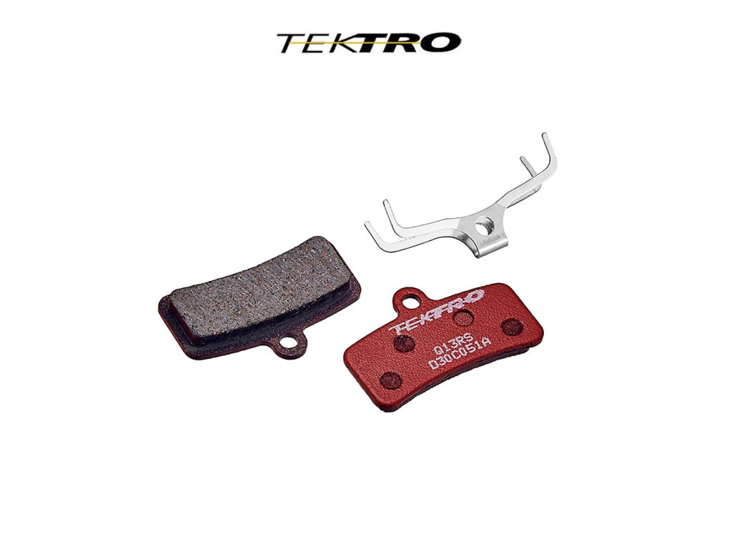 Brzdové destičky zesílené 5 mm (standard 4mm) určené pro čtyř pístkové kotoučové brzdy TEKTRO s větší roztečí pístků, semi-metalické (tvrdší) směs metal-ceramic, v balení také pružinka.