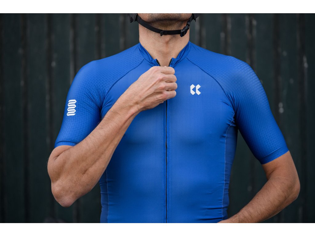 Krytý kostěný zip umožňuje pohodlné a plynulé zapínání i rozepínání dresu jednou rukou. Zároveň zachovává čistý a elegantní vzhled přední části dresu.
