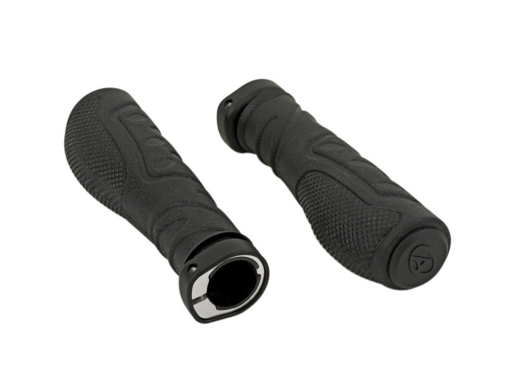 Ergonomické gripy s objímkou AUTHOR Ergo R20-E. Jsou navrženy tak, aby poskytovaly komfort a dokonalou oporu dlaně i při celodenní jízdě.