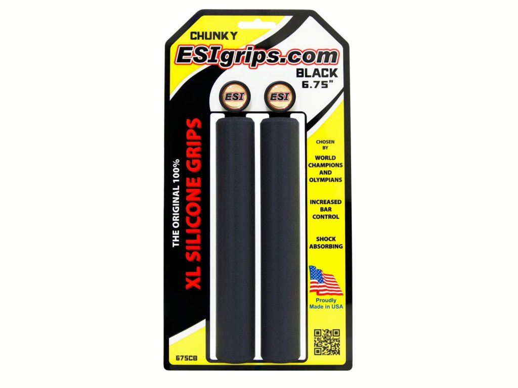Špičkové 100% silikonové gripy ESIgrips Chunky ve verzi XL - prodloužené na 6,75" / 17 cm. ESIgrips vám padnou do ruky a velmi dobře tlumí otřesy. Zaručují stejný úchop za sucha i za mokra. Neklouže, ale nelepí. Snižuje znecitlivění rukou a únavu paží.