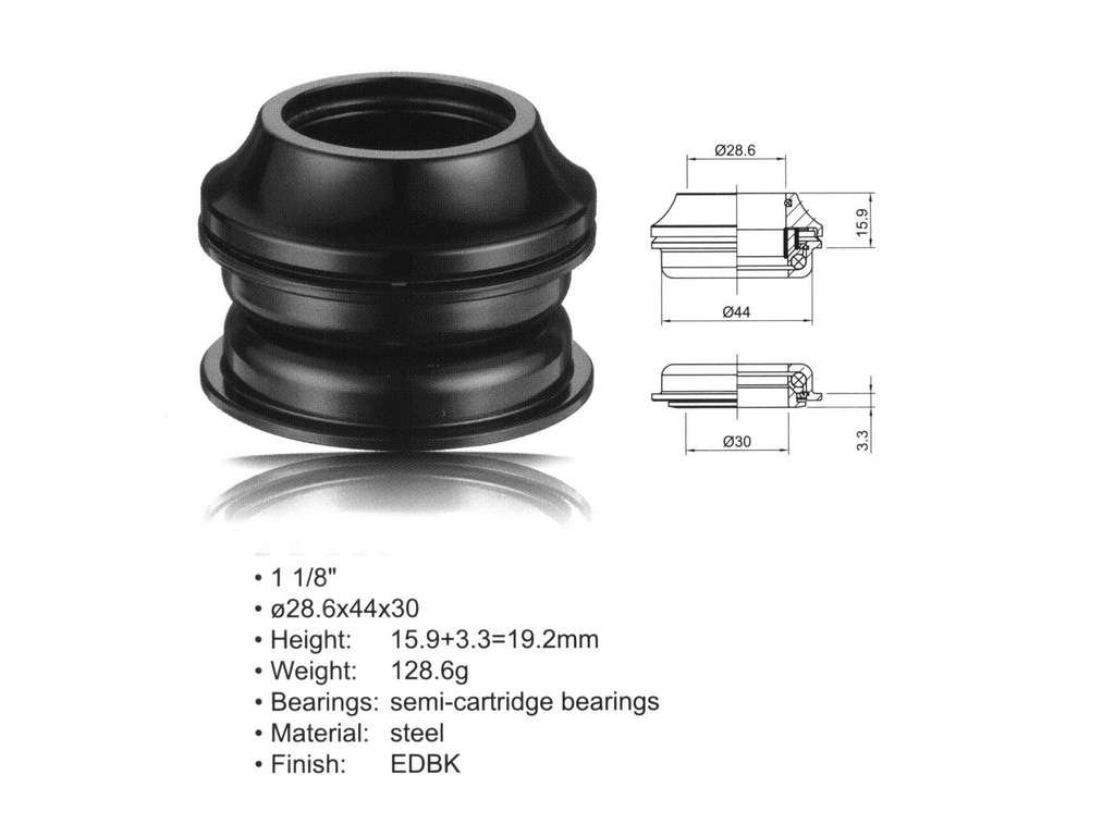 * 1 1/8"; d. 28.6x44x30; H:15.9+3.3=19.2mm, * Materiál: ocel * kuličkové ložisko