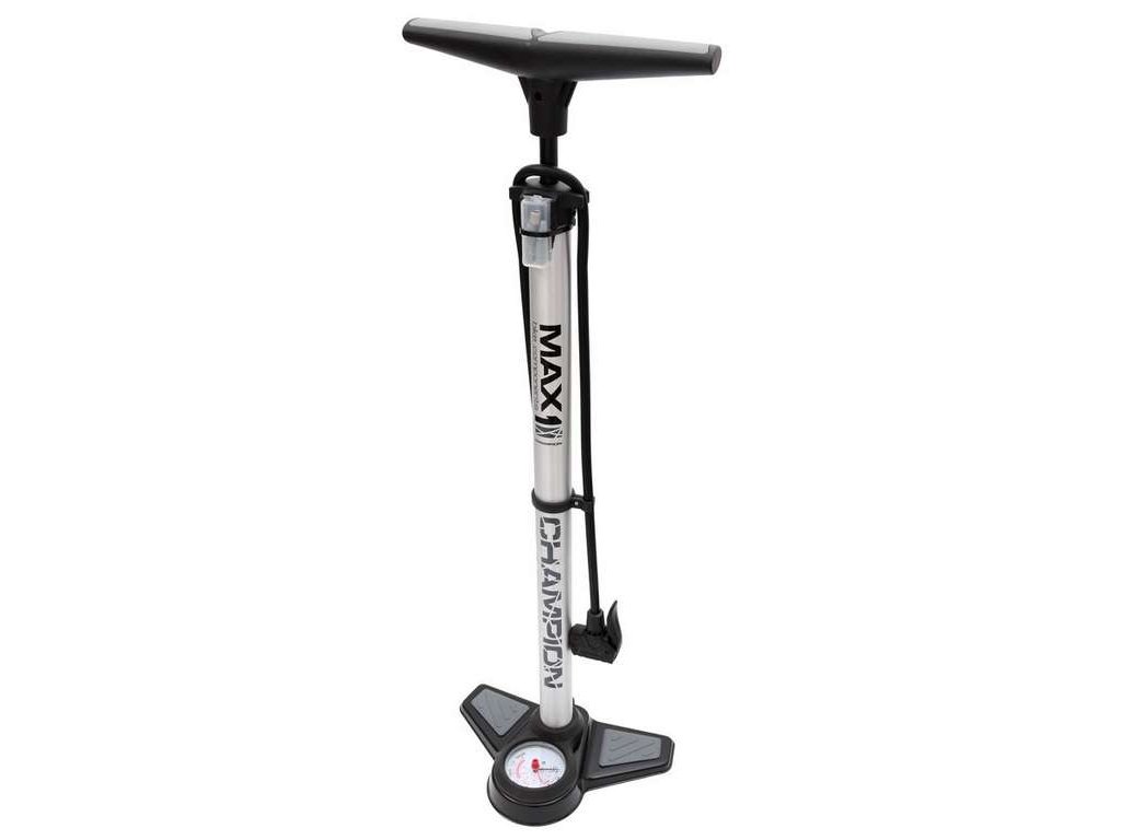 Výkonná nožní hustilka MAX1 Champion s duální hlavou a manometrem. Alu barel a stabilní steel základna.