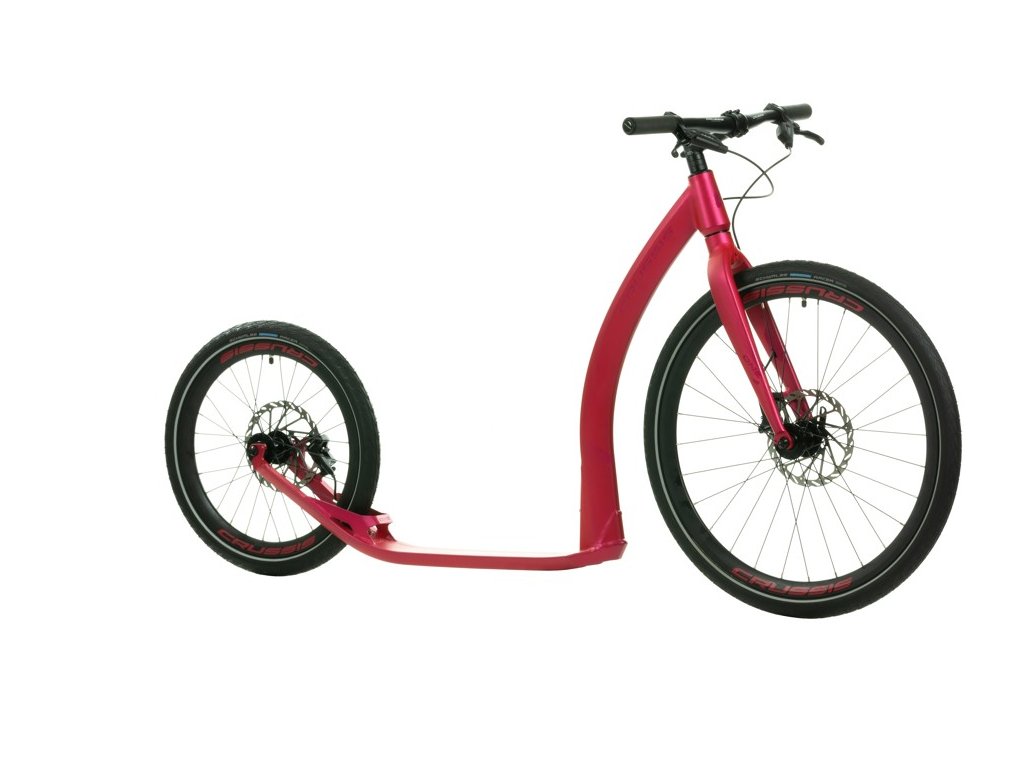 Hliníková koloběžka COBRA Sport od CRUSSIS na špičových kotoučových hydraulických brzdách SRAM s průměrem kol 26“×20“ a hmotností 8,650 kg. Koloběžka je ideální pro akční jezdce do kopcovitějšího terénu, má podstatně lepší brzdný účinek.
