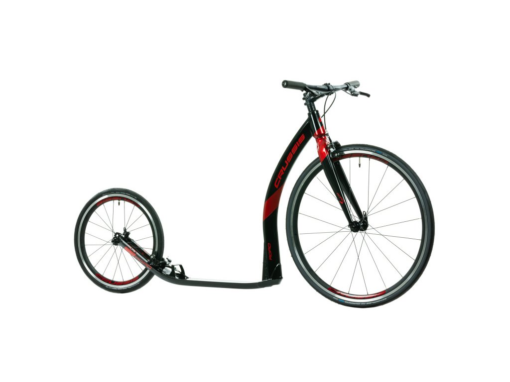 Nová hliníková silniční koloběžka CRUSSIS ROAD s hmotností pouhých 7,40 kg je tady! Road je model koloběžek, který je vhodný nejen pro závodníky, ale pro všechny, kteří mají rádi rychlou jízdu na koloběžce. „Roadka“ je koloběžka na silnici, asfaltové cesty a cyklostezky. Díky svému nízko položenému nášlapu, není určená pro jízdu v terénu. Předností je patentované řešení vysoké tuhosti rámu, díky níž se energie při odrazu neztrácí, ale je s maximální účinností přenášena do přímého směru jízdy. Krátký rozvor kol zaručuje vynikající jízdní vlastnosti a perfektní ovladatelnost koloběžky. Přední kolo má stejný průměr jako běžná silniční kola 28“, zadní je 20“. Roadka je obutá na kvalitních pláštích SCHWALBE Durano s velmi nízkým valivým odporem. Velice účinné brzdy TEKTRO, které se běžně používají v silniční cyklistice, jsou navíc vybaveny integrovaným zvonkem. Koloběžka je velmi rychlá a perfektně ovladatelná při průjezdu zatáčkami. Není tedy nač čekat.. Obujte boty a šlápněte do toho!Doplňkové parametry
