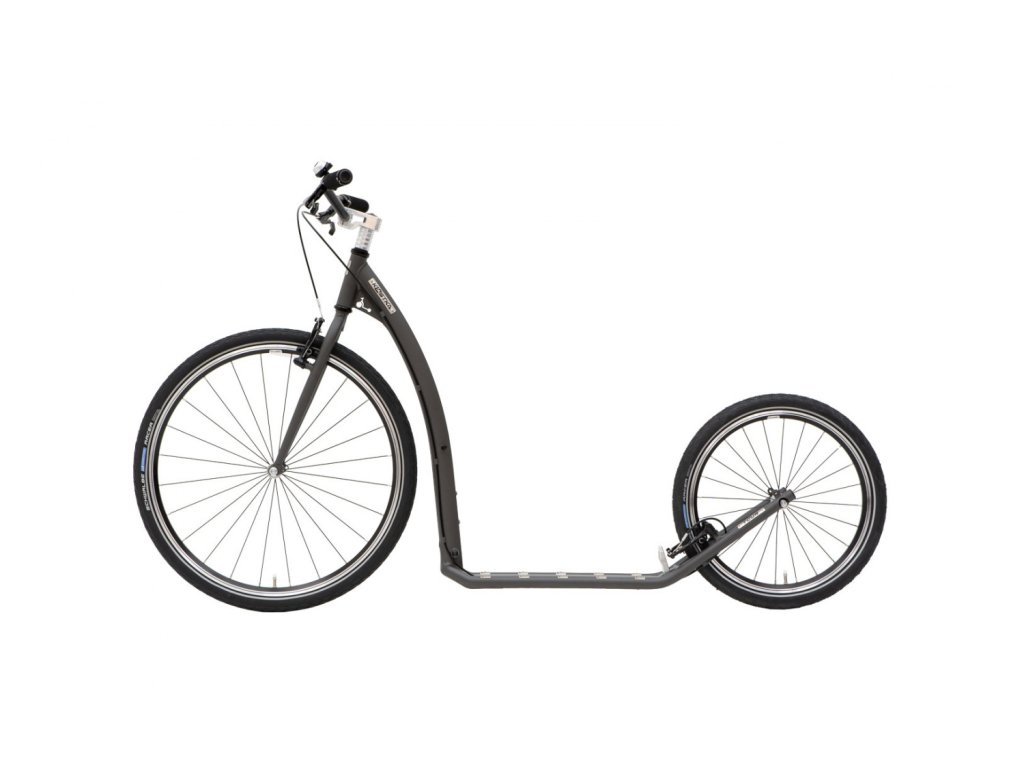 Nejoblíbenější turistická Koloběžka KOSTKA TOUR MAX (G6) pro dospělé 26/20 s velkými koly, která i přes svou univerzálnost neztrácí svůj sportovní charakter. Abyste s grácií profrčeli i lehkým terénem, disponuje koloběžka 26" předním kolem, které snáze překonává nerovnosti.