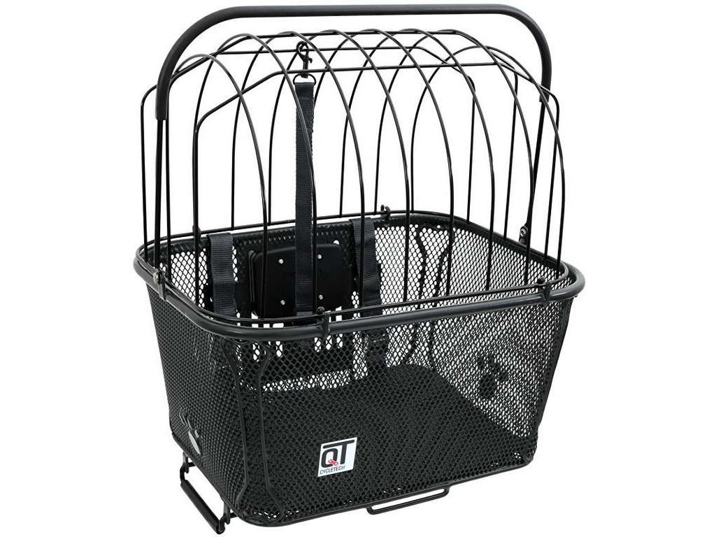 Univerzální drátěný koš na kolo s ochrannou klecí pro montáž na zadní nosič a možností montáže na řidítka
