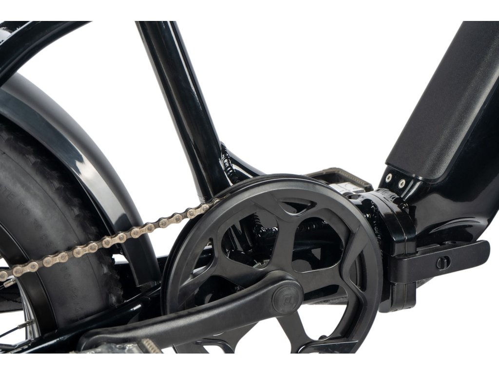 Zadní elektromotor Bafang vyniká velmi plynulým a tichým chodem. Nabízí nominální výkon 250W a maximální výkon 350W s plně dostačujícím kroutícím momentem 80 Nm pro jízdu ve městě.
