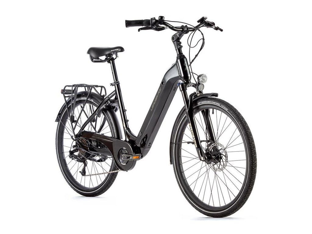 Městské elektrokolo Leader Fox LOTUS 26" s hliníkovým rámem, odpruženou přední vidlicí, kotoučovými brzdami. Snadné nastupování díky elegantnímu městskému designu.