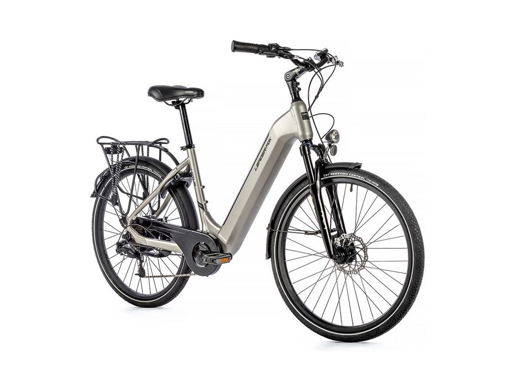 Městské elektrokolo Leader Fox LOTUS 26" s hliníkovým rámem, odpruženou přední vidlicí, kotoučovými brzdami. Snadné nastupování díky elegantnímu městskému designu.
