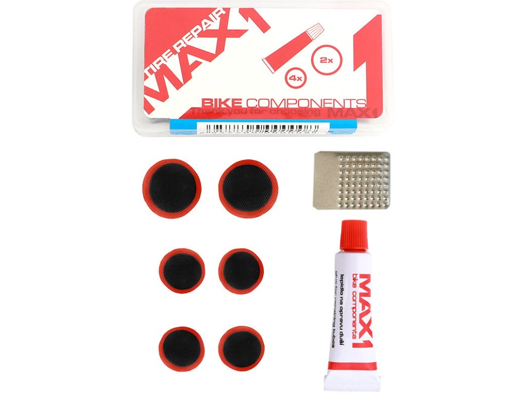 Opravná sada lepení MAX1 malá. Vhodné pro butylové i kaučukové duše. souprava obsahuje: - 4× záplata kruh (o 20 mm) - 2× záplata kruh (o 25 mm) - 1× lepidlo 5 ml - 1× zdrsňovačDoplňkové parametry