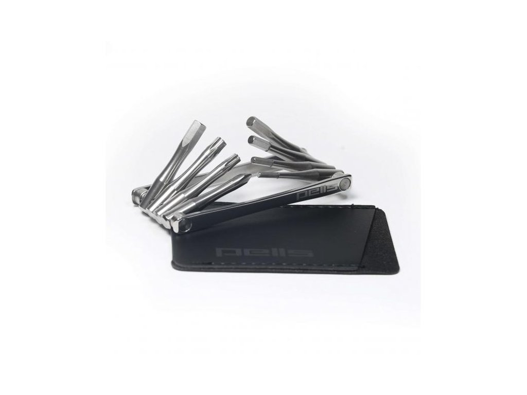Celonerezový multiklíč z materiálu SUS420. Multiklíč PELLS Flat je vyroben z celonerezového materiálu SUS420. Tato speciální slitina je označována za jednu z nejlepších s vyšším obsahem chromu. Má jednu z nejvyšších tvrdostí 50 HRC a nekoroduje. Součástí modelu jsou imbusové klíče 2,5 / 3 / 4 / 5 / 6, torx 25 / 30 a křížový šroubovák. To vše v praktickém černém pouzdře.