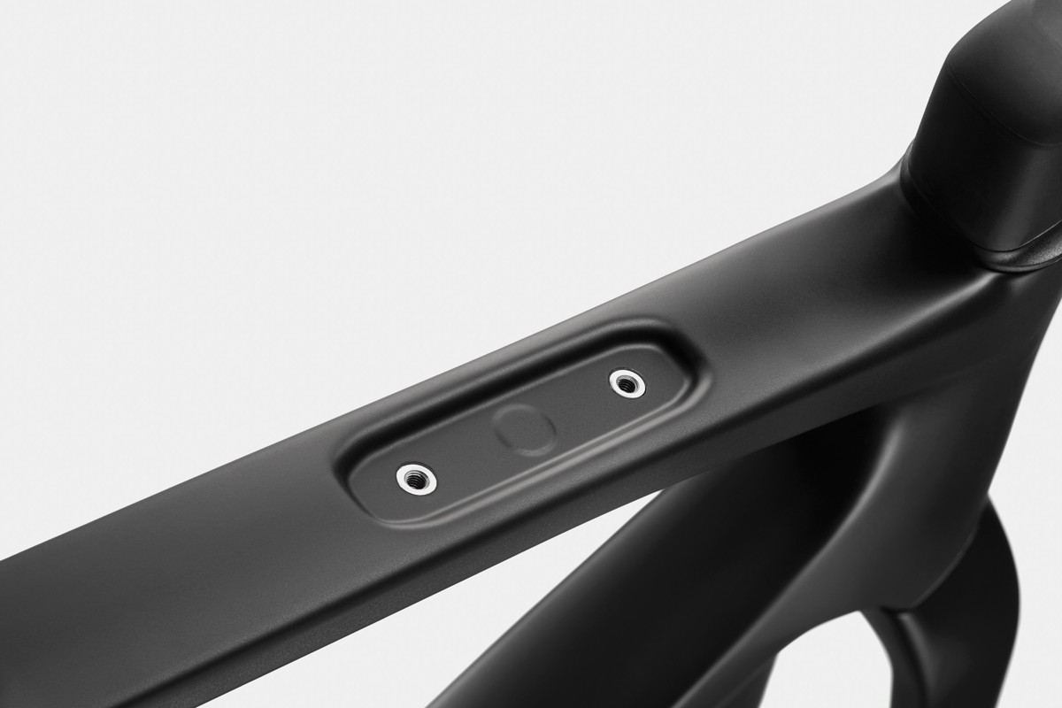 Úhledný kryt skrývá uchycení brašny na horní rámovou trubku kola SuperX. Je tam, když ho chcete, a neviditelný, když ho nechcete.