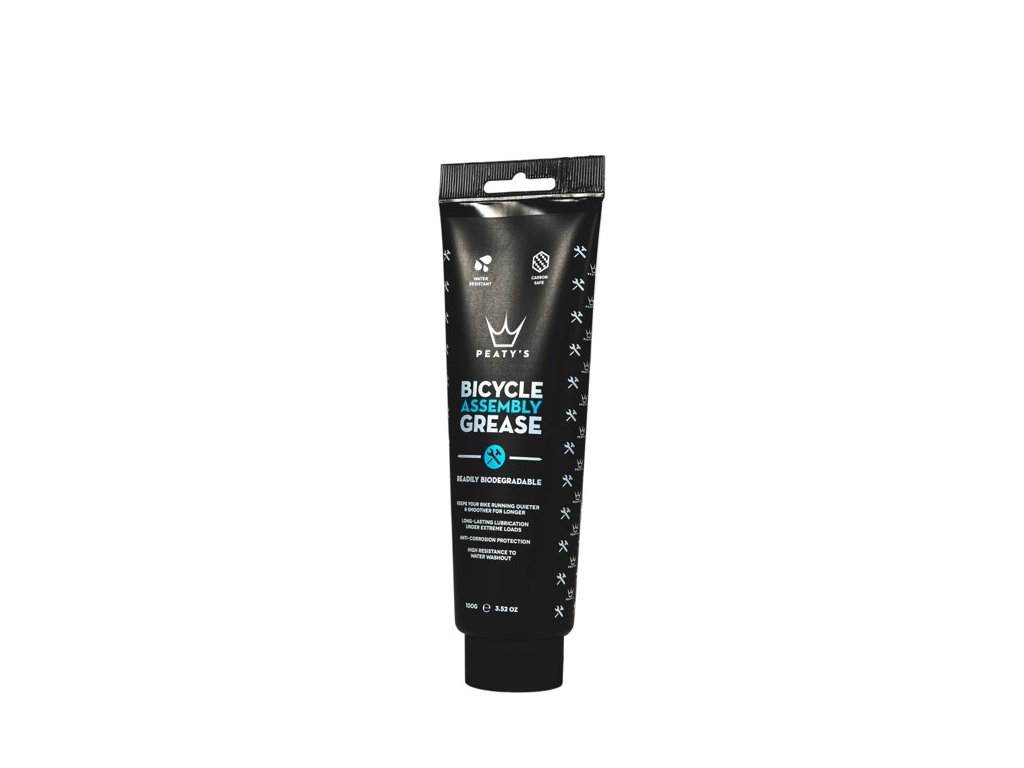 Peaty’s Assembly Grease využívá nejnovější generace základních olejů a aditiv, čímž zajišťuje dlouhodobý výkon s velmi nízkou hladinou tření i při extrémních tlacích. Tato vazelína vykazuje vysokou odolnost proti vymývání vodou, vynikající antikorozní vlastnosti a přilnavost ke kovovým částem a zároveň je slučitelná i s většinou ostatních běžně používaných maziv. Plná biologická rozložitelnost vazelíny Assembly Grease byla oficiálně prokázána prostřednictvím testu OECD 301B.