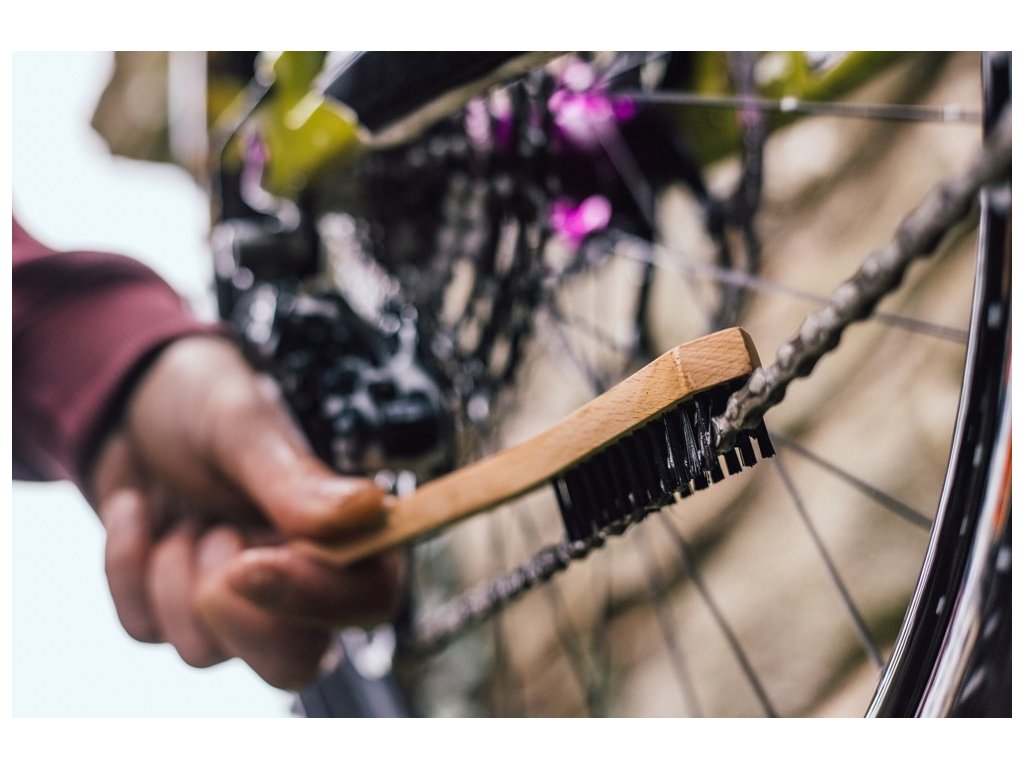 Odolné štětiny s nízkým středovým profilem jsou uzpůsobeny tomu, aby dokonale obejmuly řetěz. Prostřední řada kartáče disponuje tužšími štětinami, které vydrhnout váš řetěz opravdu do hloubky. Hrubé nečistoty z kladek přehazovačky pak spolehlivě seškrábnete prostřednictvím zkosené přední části hlavy kartáče.