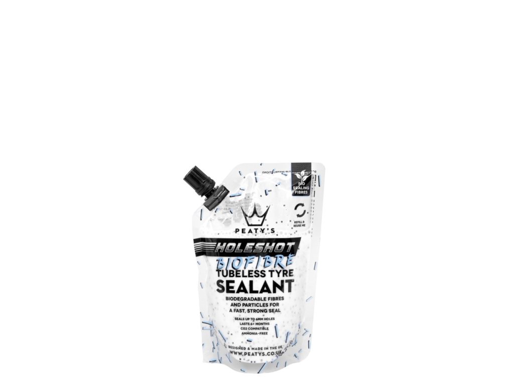 Vyvinutý společně s mechaniky Světového poháru a mistry světa. Peaty's Holeshot Tubeless Sealant je plný biologicky odbouratelných vláken a těsnicích částic, které zajišťují rychlé a silné utěsnění. Náš těsnicí tmel na vodní bázi, který využívá nejnovější rychle působící latex, neobsahuje amoniak, není nebezpečný a v mírném podnebí vydrží v pneumatice až 6 měsíců. V pneumatice se netvoří kuličky a snadno se vymývá.