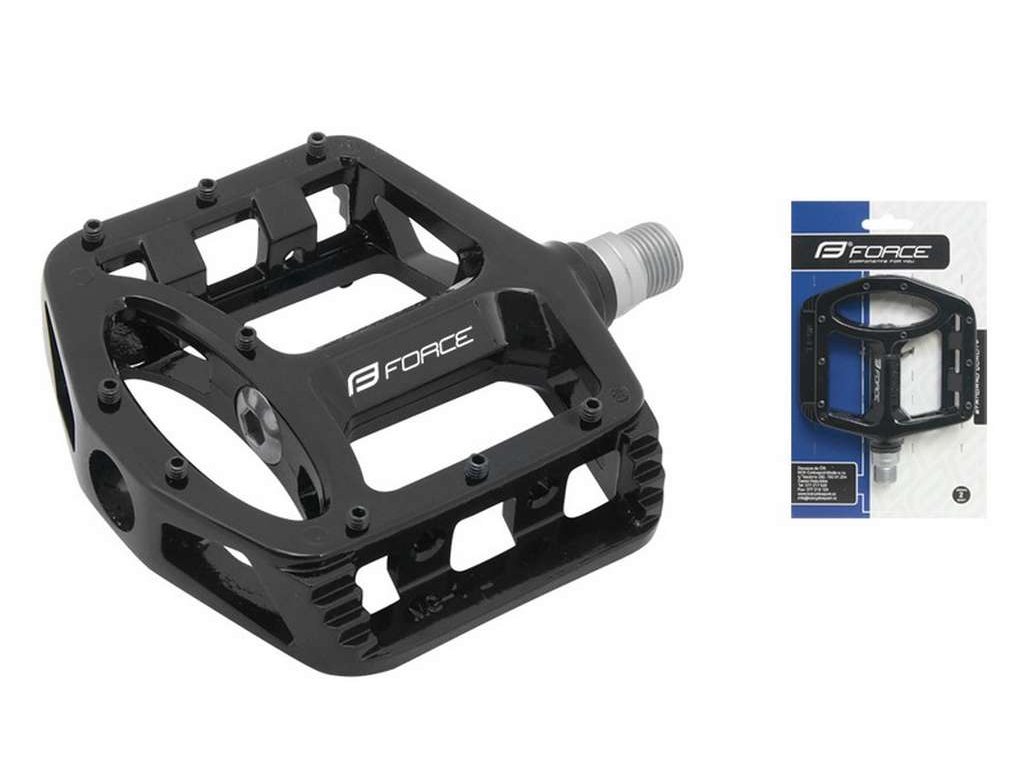průmyslová ložiska, výměnné piny na inbus materiál: tělo pedálu magnesium, osa Cr-Mo velikost platformy: 115x107x31 mm hmotnost 1 páru: 376 g baleno na kartě FORCEDoplňkové parametry