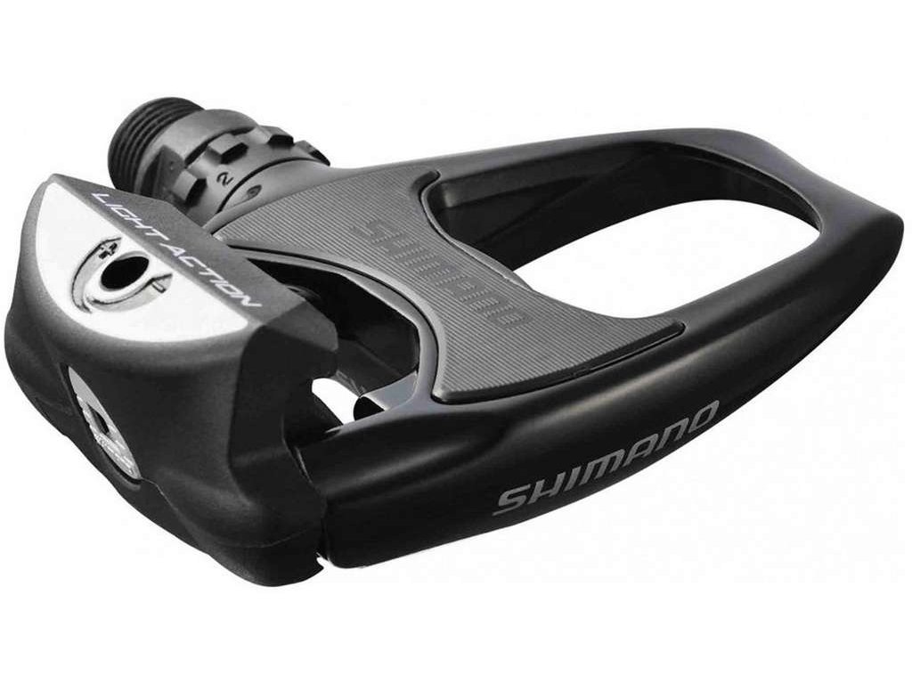 Silniční pedály Shimano SPD-SL, široká základna účinně přenáší energii, s lehčím chodem pružiny (pro rekreační styl jízdy)