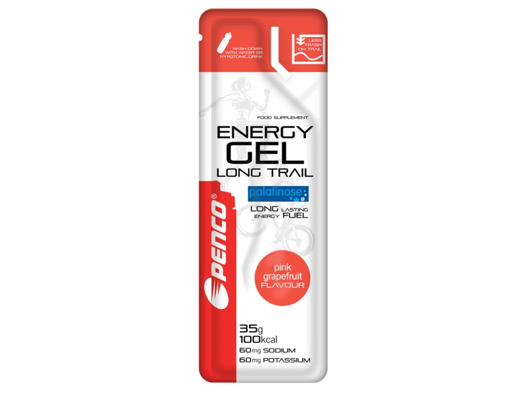 Penco® ENERGY GEL LONG TRAIL zvyšuje hladinu sacharidového „paliva“ před a během výkonu. Obsahuje speciální směs komplexních sacharidů (maltodextrinů) a jednoduchých cukrů (glukózy a fruktózy) a nyní nově i Palatinosu pro postupné uvolňování energie během déletrvajících sportovních výkonů.