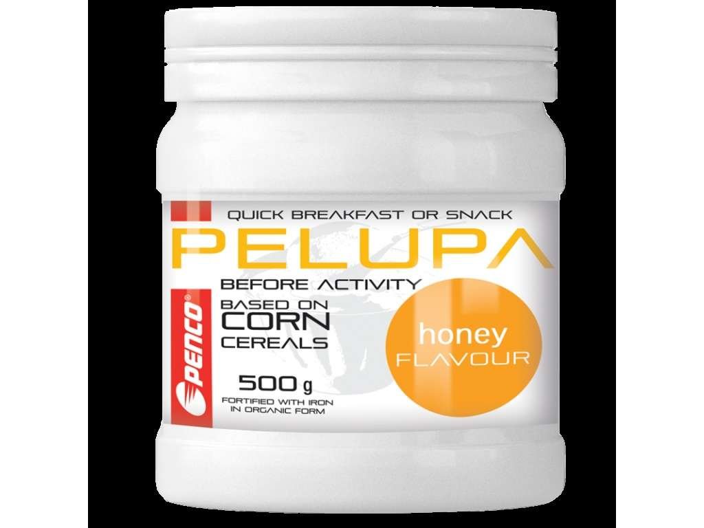 PENCO®PELUPA je instantní zdravá výživa na bázi kukuřice a medu. Poskytuje všechny potřebné živiny pro udržení výkonnosti a omezení pocitu hladu při tréninku nebo závodu. Kromě širokého spektra vitamínů a minerálních látek obsahuje plnohodnotné bílkoviny, nezbytné pro regeneraci a růst svalů, a polysacharidy, které zajišťují dodání potřebného množství energie pro zahájení nového dne. Na rozdíl od jiných podobných výrobků na našem trhu je PENCO®PELUPA výjimečná svým vysokým obsahem lecitinu. PENCO®PELUPA je velmi vhodná jako sacharidová dieta před sportovním výkonem, doporučujeme jak pro krátkodobé silové výkony, tak i pro vytrvalostní zátěž. Je obohacena širokým spektrem vitamínů, zejména vitamíny C, B6, B12 a kyselinou listovou, které přispívají k normální funkci imunitního systému. Nově je obohacena železem v organické dobře využitelné formě. Železo podporuje normální tvorbu červených krvinek a hemoglobinu a přispívá k přenosu kyslíku v těle. Vstřebávání železa zvyšuje vysoký obsah vitamínu C.Jedna dávka Pelupy obsahuje 10 mg železa , což představuje asi 70 % doporučené denní dávky. Suplementace železem je důležitá hlavně pro vytrvalostní sportovkyně pro udržení výkonnosti.