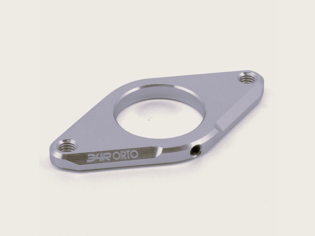 Materiál Al 6061 s tepelnou úpravou T6. CNC zpracování do oblého tvaru. Designově sladěno s představcem ORTO. Odlehčení na spodní straně. Pro průměr vidlice 28,6 mm. Aretační šroubek M3 proti protáčení. 2x závit M6 pro štelovací šrouby. Hmotnost 20g.