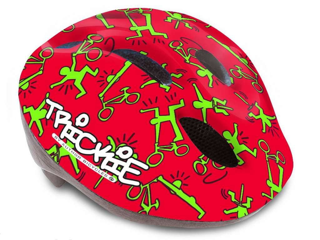 Přilba AUTHOR Trickie, jednoduché nastavení vnitřní čelenky upínacího mechanismu pomocí suchého zipu. Velké přední otvory se síťkou proti hmyzu zaručují dostatečné odvětrání. Prodloužená přední část chrání pře slunečním zářením a zvyšuje ochranu obličeje při případném pádu.