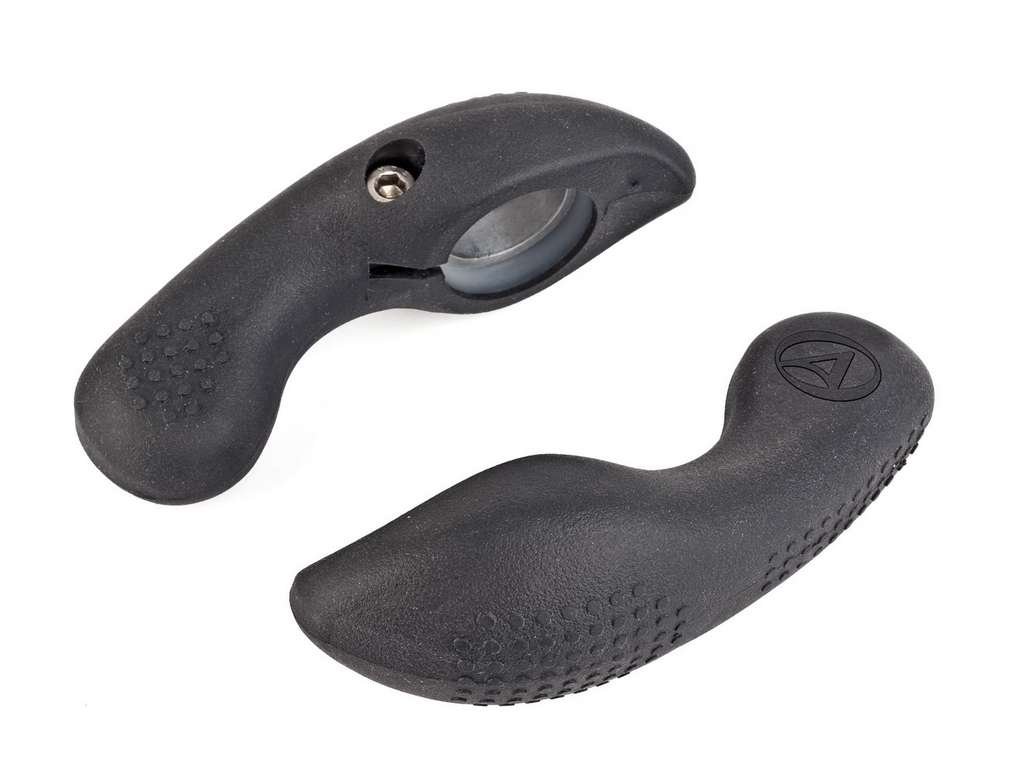 Krátké rohy, ergonomický tvar s měkkým povrchem, speciální vnitřní osazení pro možnost propojení s gripy s pojistnou objímkou řady AUTHOR Grip Lock, Materiál měkčená pryž/ AL6061. Hmotnost 110 g.