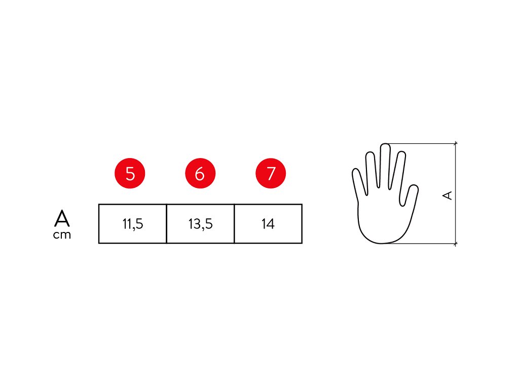- Reliéfní protiskluzový silikonový tisk na dlaních pro maximální přilnavost