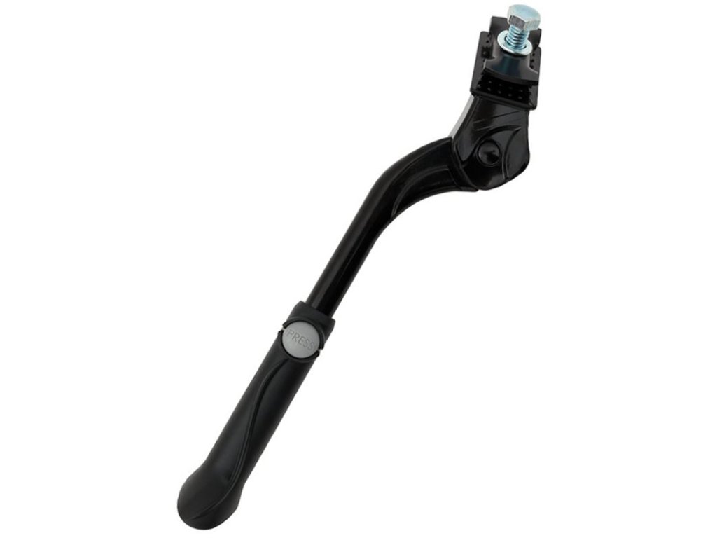 Nastavitelný středový stojan pro dětská jízdní kola. - tělo z hliníkové slitiny - nastavení velikosti bez použití nářadí - pro kola 16"-20". Montáž: doporučujeme montovat v odborném servisu. I montáž na rám kola: pokud má rám kola přípravu pro montáž stojánku (destičku s otvorem), doporučuje se použít kratší šroub (M10x20), než je dodávaný se stojánkem (M10x60). Jinak montujeme na zadní stavbu všetně podložky. Lehce dotáhneme, zkontrolujeme zda stojánek nezasahuje do výlpetu zadního kola a do trajektorie pohybu nohy při šlapání. Nakonec je důležité stojánek řádně dotáhnout, aby nedošlo k uvolnění a případné nehodě. Následně stlačením tlačítka na noze stojánku, uvolníme spodní opěru a umístíme do optimální polohy, aby kolo samo stálo na stojánku.Doplňkové parametry