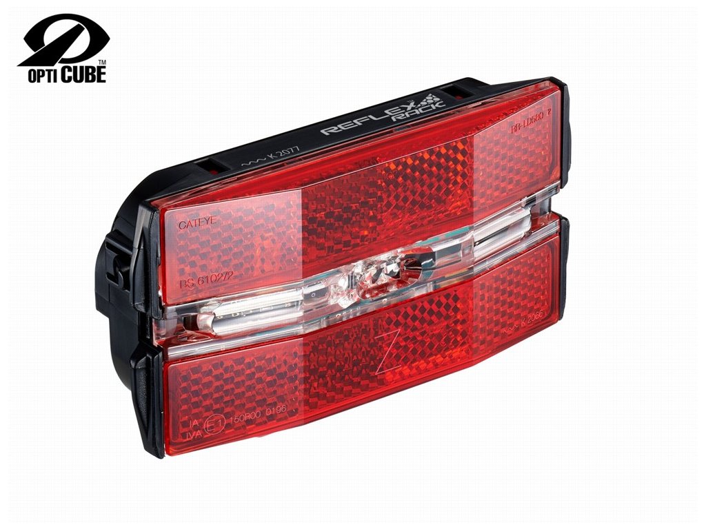 Zadní světlo CATEYE s odrazkou splňující EU standardy. Jedna výkonná výkonná LED s OptiCube technologií a viditelností do stran. Uchycení na nosič - 19 střed / 50 / 80 mm. Voděodolné podle IPX4. Dlouhá výdrž svícení až 220h. Kontrolka nízké kapacity baterie. Zdroj 2xLR-06 (AA) alkalické baterie - jsou přiloženy.