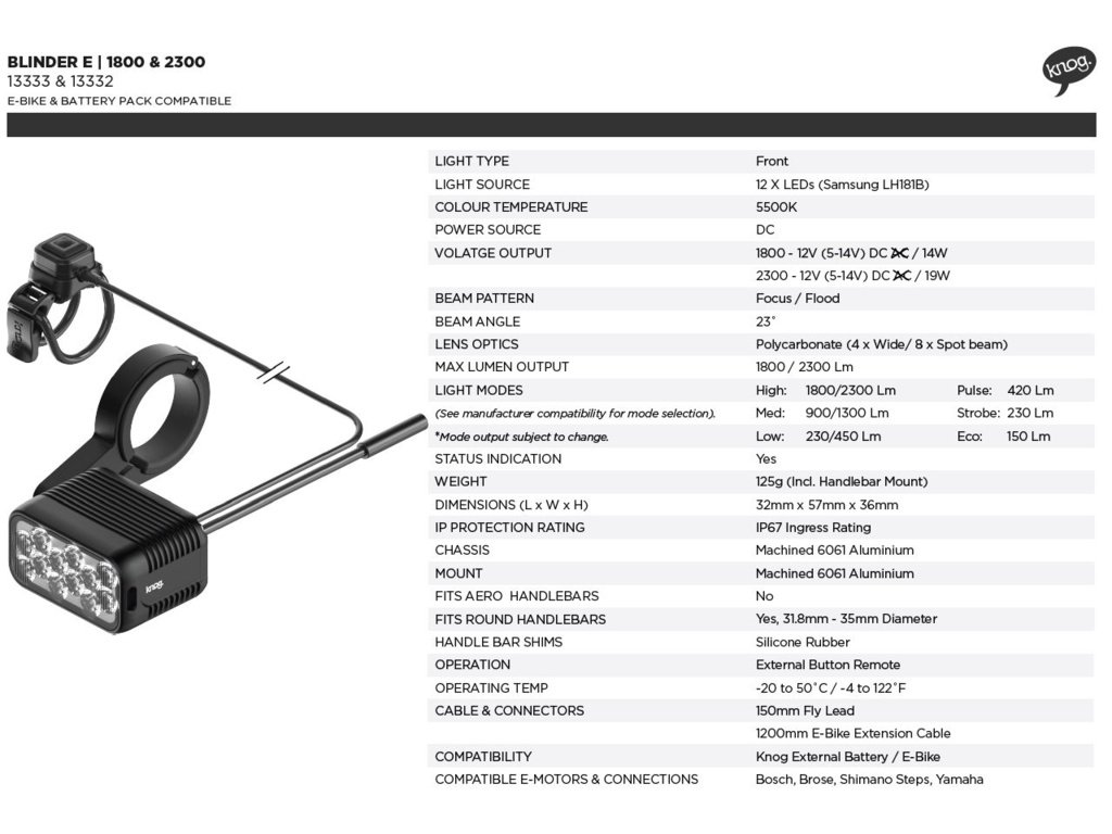 - Tyto světelné hlavice Blinder E lze použít také s externí baterií Knog Blinder X s kapacitou 10 000 mAh.