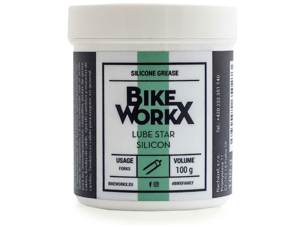 Silikonová pasta Bikeworkx LUBE STAR SILICON vhodná pro mazání O-kroužků a gumových těsnění při jejich montáži. Své uplatnění najde všude tam, kde je potřeba promazat spojení gumové (plastové) a kovové plochy.Doplňkové parametry
