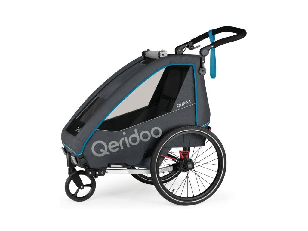 Jednomístný odpružený dětský vozík za kolo Qeridoo Qupa1. Nabízí komfortní sedadlo s adaptivním 5-bodovým pásem a kočárkové kolečko Multiwheel s funkcí aretace. Doporučujeme pro děti s maximální výškou 116,5 cm.