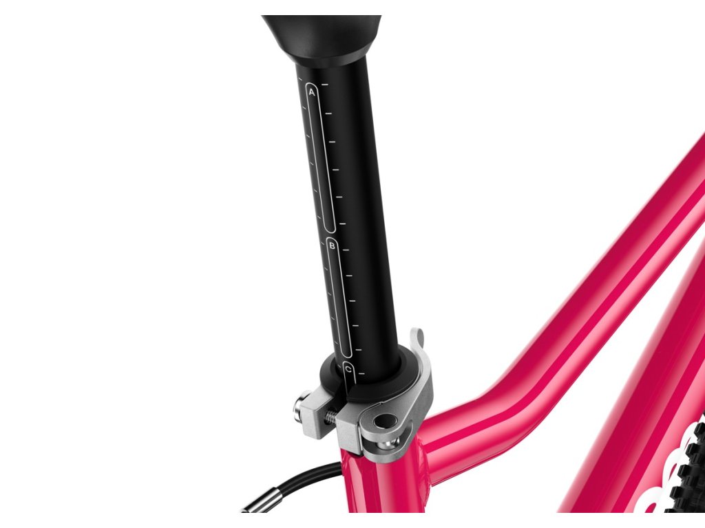 Sedlovka i představec jsou označené písmeny A, B a C, díky čemuž snadno nastavíte správný posed na kole a jízda tak bude pro dítě pohodlná a přirozená.