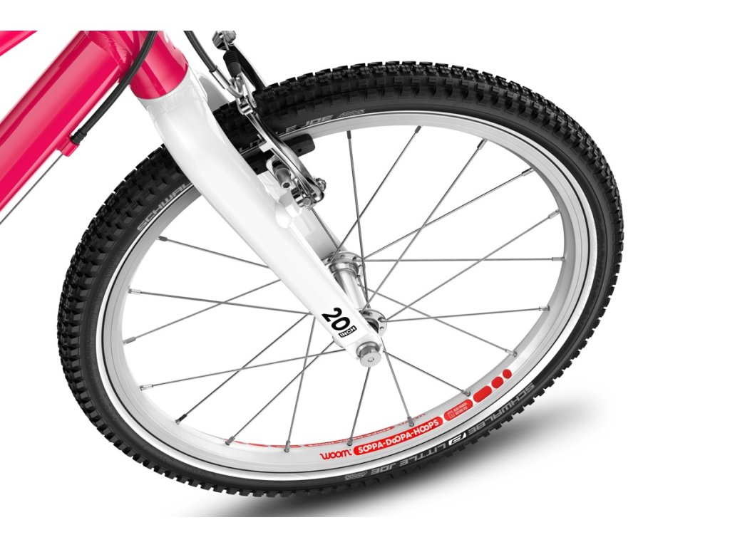 Woom GO 4 přijíždí s vysoce kvalitními koly, která byla pečlivě navržena do posledního detailu – od hladce se otáčejících nábojů po pevné paprsky z nerezové oceli a lehké hliníkové ráfky.